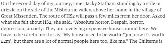 NIMBYism has created a bizarre alliance between The Green Party, Liberal Democrats, wealthy homeowners in Richmond and the Chilterns, and Little Englanders afraid that the noise of HS2 will drive the game away from their hunting grounds. All of these groups are completely disparate in their ideologies and motivations, but the effects of their incessant whinging are the same everywhere; economic stagnation, gatekeeping, and as per always, the working class and poor brunt the worst of the consequences. More has to be done to combat the groups of middle class and wealthy who see fit to guard the lifestyles they enjoy at the expense of our national economy and the well-being of the working classes and urbanites.